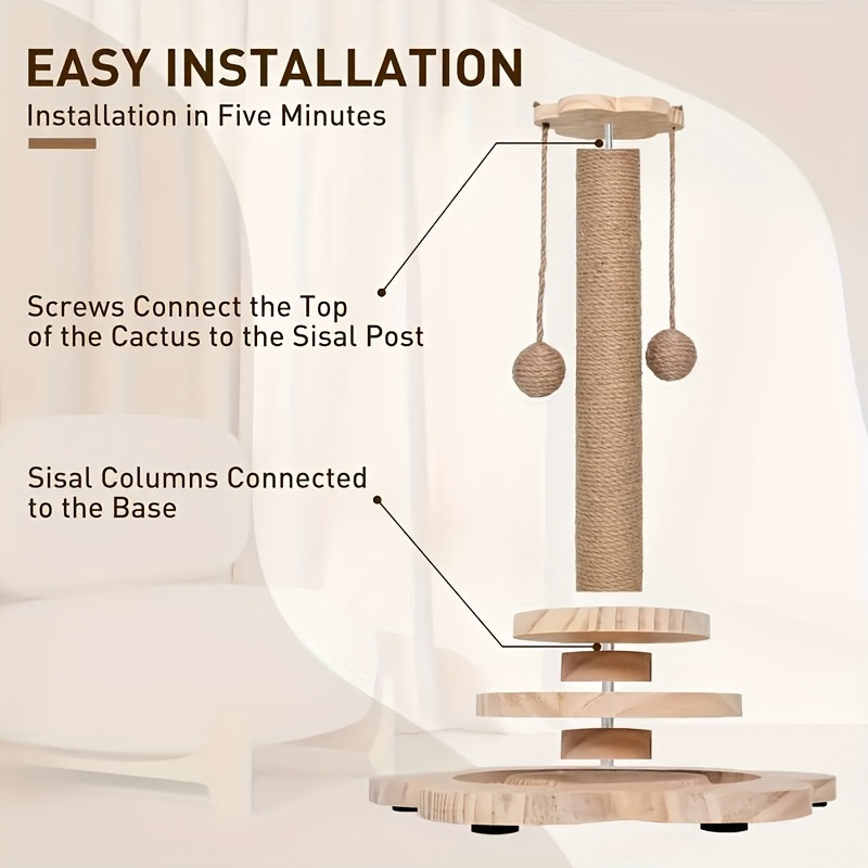 Multi-level Cat Scratching Post, Crafted From Premium Sisal, 4-in-1 Solid Wood Kitten Toy: Scratching Post + Six Wooden Toy Ball + Feather Toy + Dual-Layer Ball Track | Sturdy Anti-Tip Base,Durable, Perfect for Indoor Cats And Multi-cat Households